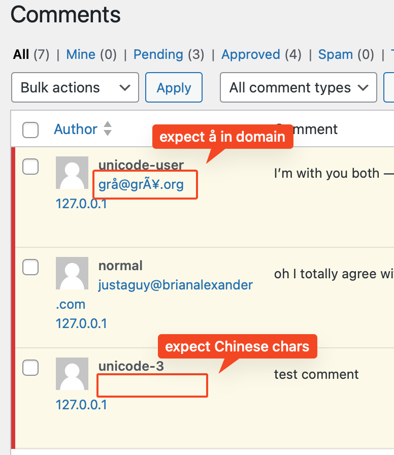 - Maintain existing behavior in the antispambot function. That is, let’s not skip non-ASCII characters just because we don’t see them as being present as threats. I think we can probably deprecate that function entirely and skip this, but we will create another discussion for that.