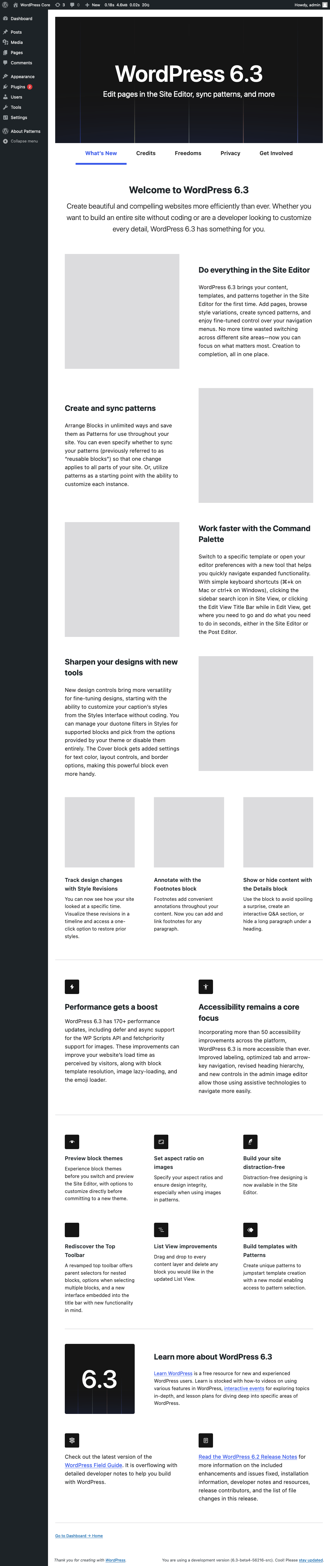 The only bit I think would be interesting (and not much of a change) is to include the Highlight Grid into the top of the About Page. Instead of showing a big "WordPress 6.3" banner, we'd have the highlight grid.